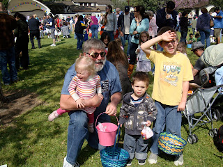 I knew Tessa was not her normal self this past week. She has had a little bit of a runny nose and has not wanted to eat the last couple of days (and our girl loves to eat :) But overall she was in a great mood and playing around. But after the egg hunt I noticed she was itching her neck a lot. I looked and saw she had a rash all along her hairline, behind her ears, and on her neck. The rash was also on her belly and back. So we found ourselves in urgent care (to have one of the worst medical experiences I have had). As you know, I was not planning on having to go to the doctors and the timing was not the best. It was lunch time and nap time... and I had no snacks, toys, or blankie. Not good! So I had to be creative and unfortunately the doctor was not the fastest since she was having a difficult time diagnosing Tessa. To make a long story short, the doc came in and looked at Tess and told me should be right back to talk to me. After waiting for over 40 minutes for her to come back in to tell me what was wrong with my child,and running out of entertainment, I went out of the room to look for her to find her researching on the internet possible things Tessa may have. I wanted to tell say "Hey lady I could do that!" But I didn't (aren't you proud)! So you can understand why I didn't have to the most confidence in what she had to tell me. Like they say, a mother knows best. She told me she wanted to put her on antibiotics "just in case" and to stay away from people "just in case". But she never actually told me what she had. So I walked out of there 2 hours later with a hungry, sick, sleepy girl and a unhappy, hungry boy thinking my child was going to get everyone around her sick which meant we would need to miss Easter. But after many hours of searching, and bothering very helpful pediatricians whom are friends of friends, I think we figured out what is wrong. The diagnosis is a Viral infection which caused the runny nose, sore throat, and rash. And the good news is that she is only contagious if she has a fever, which she hasn't had!!!