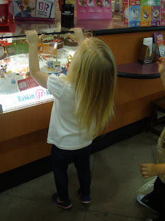 Tessa spotted this Minnie Mouse ice cream cake about a month ago and has not stopped talking about it since. This was the highlight of her birthday! She could not wait to get her "Happy Birthday" home. So we finally ended the day with presents and cake.